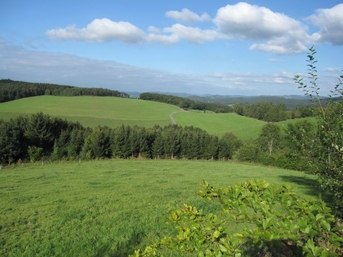 Oberhalb unseres Hofes am Waldrand liegt die Blockhütte. Neben ganz viel Ruhe bietet die Blockhütte einen einmaligen Blick weiter über das Repetal bis ins Hochsauerland.
